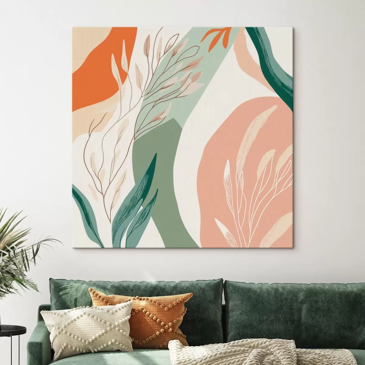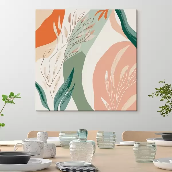 Glezna Botānikas māksla ar maigām formām koraļļzaļā toņu gamā Nr s48840
