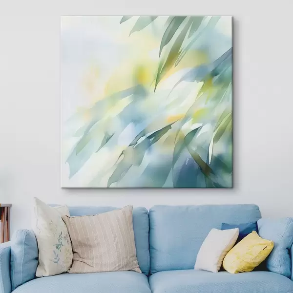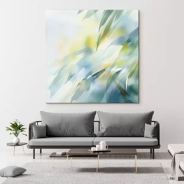 Glezna Izplūdušas dabas formas un maigi tirkīza toņi mākslinieciskā plakāta stilā Nr s48850