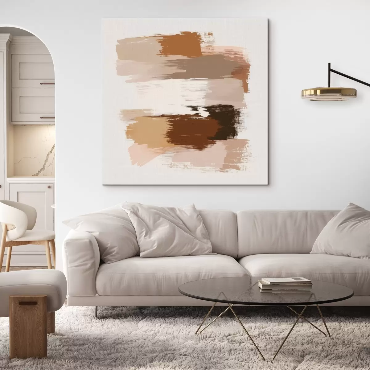 Glezna Minimālisma stila kompozīcija ar horizontāliem triepieniem kafijas un terakotas toņos Nr s48858