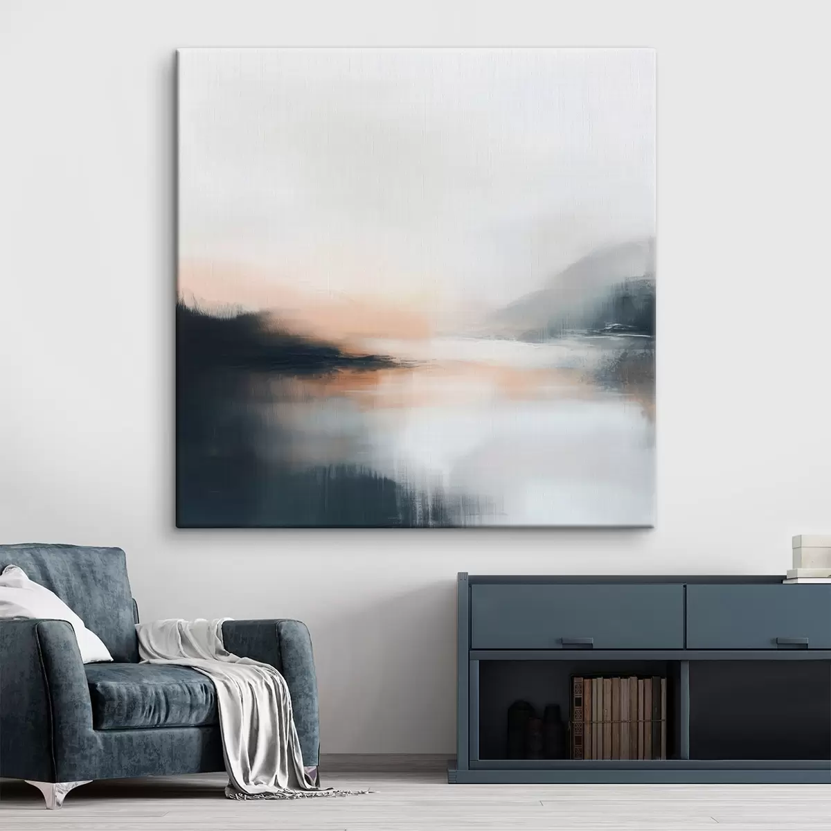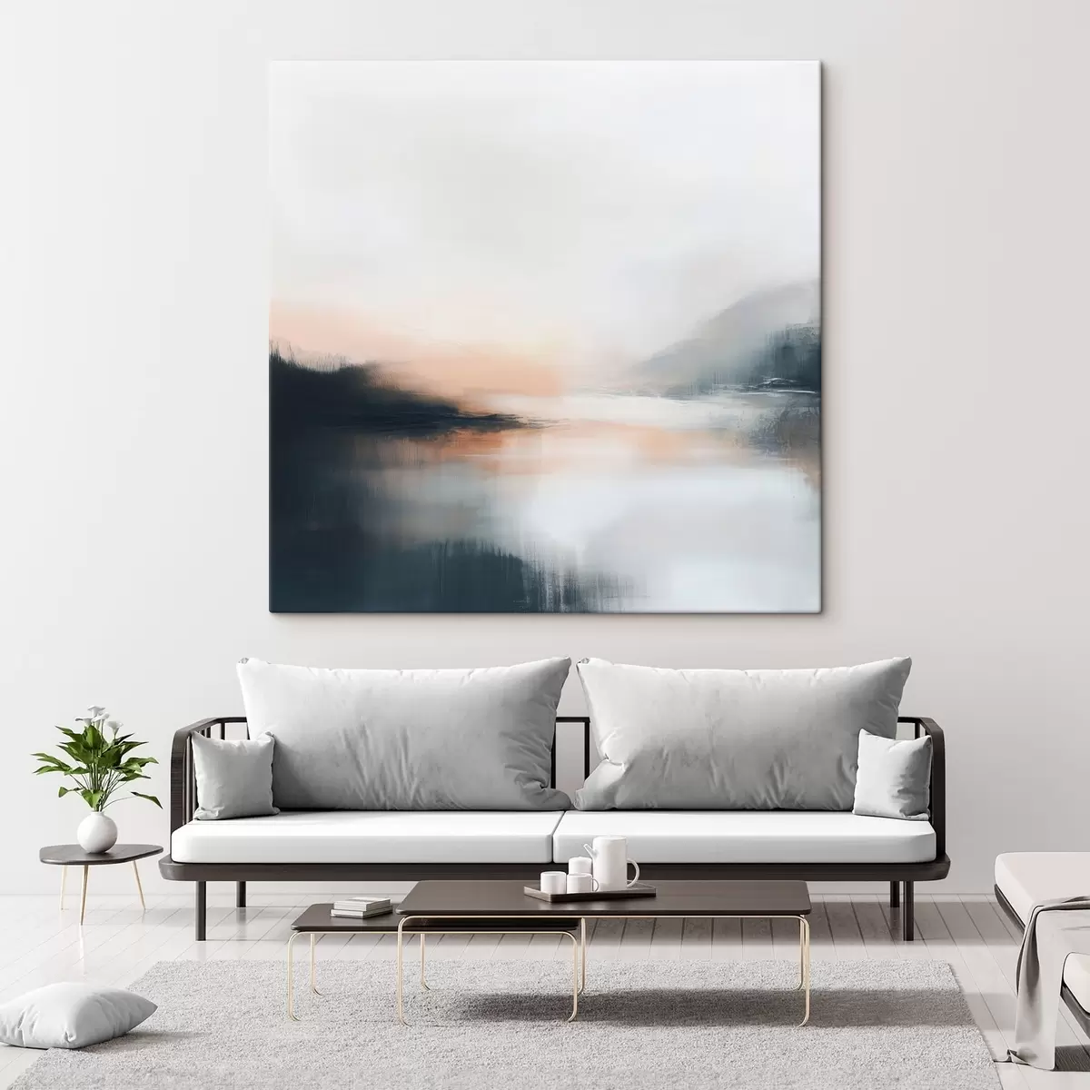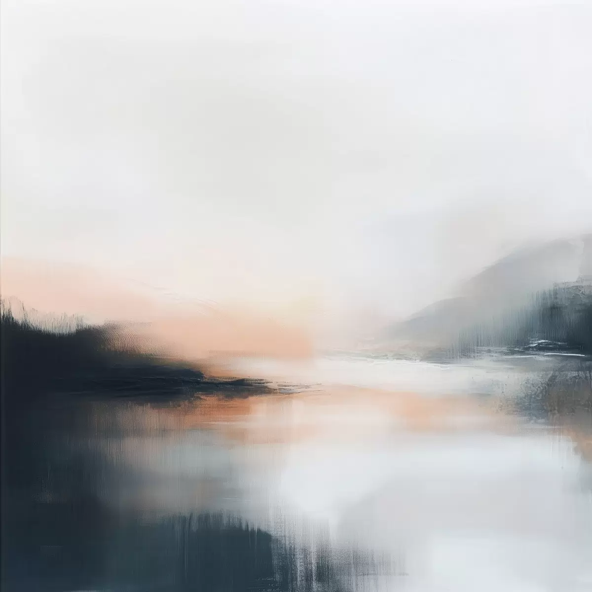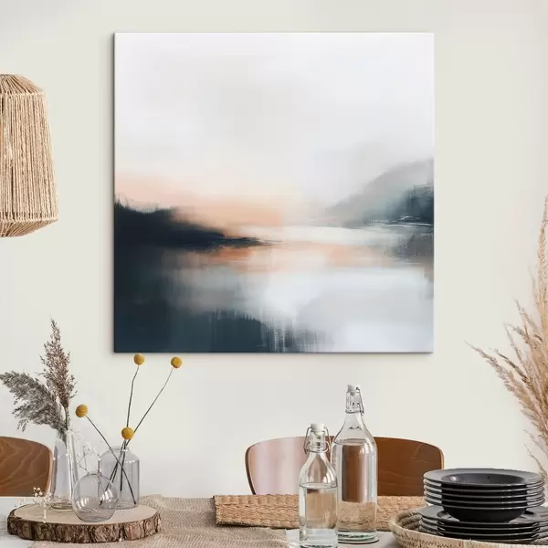 Glezna Abstrakts miglas apklāts ainavas attēls siltā smilškrāsas un koraļļu toņu gamā Nr s48861