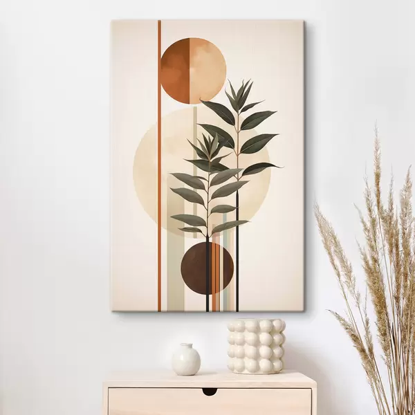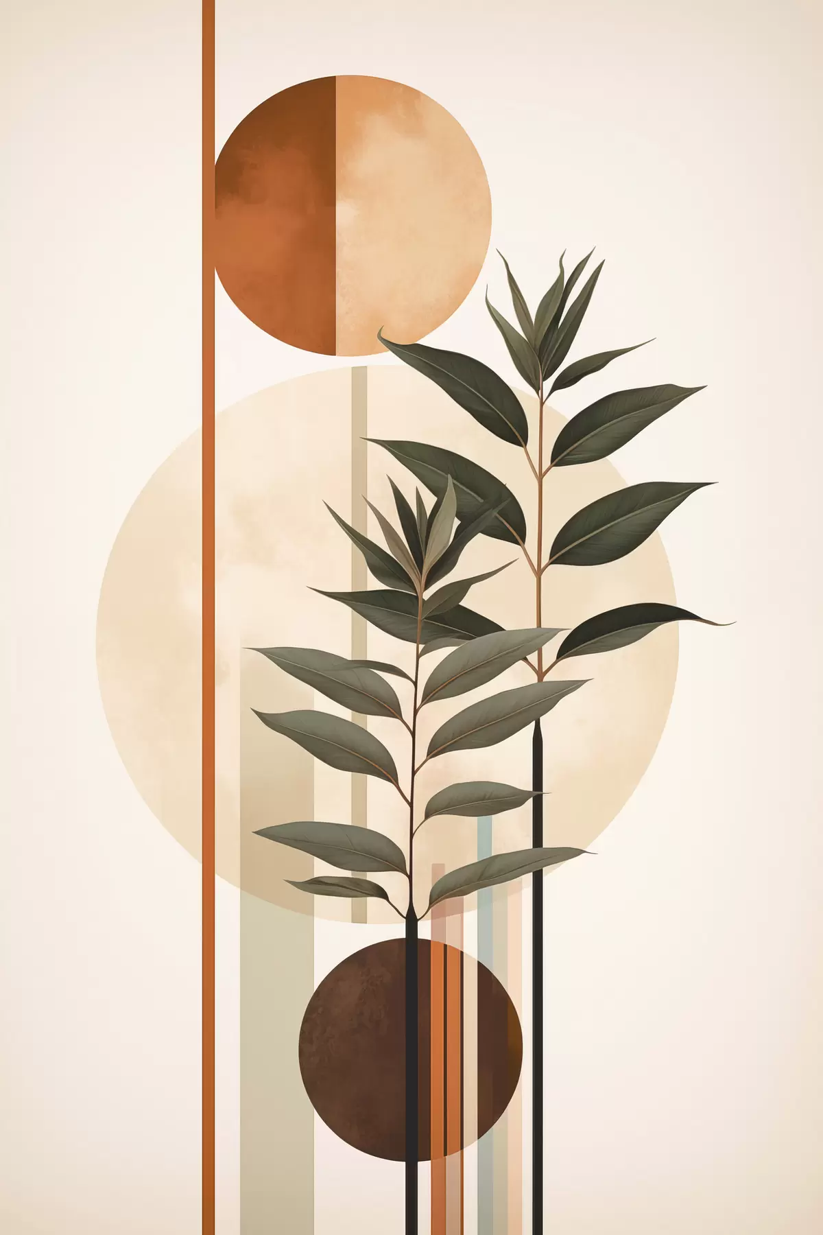 Glezna Abstraktas augu formas ar apļiem un līnijām Nr s48928