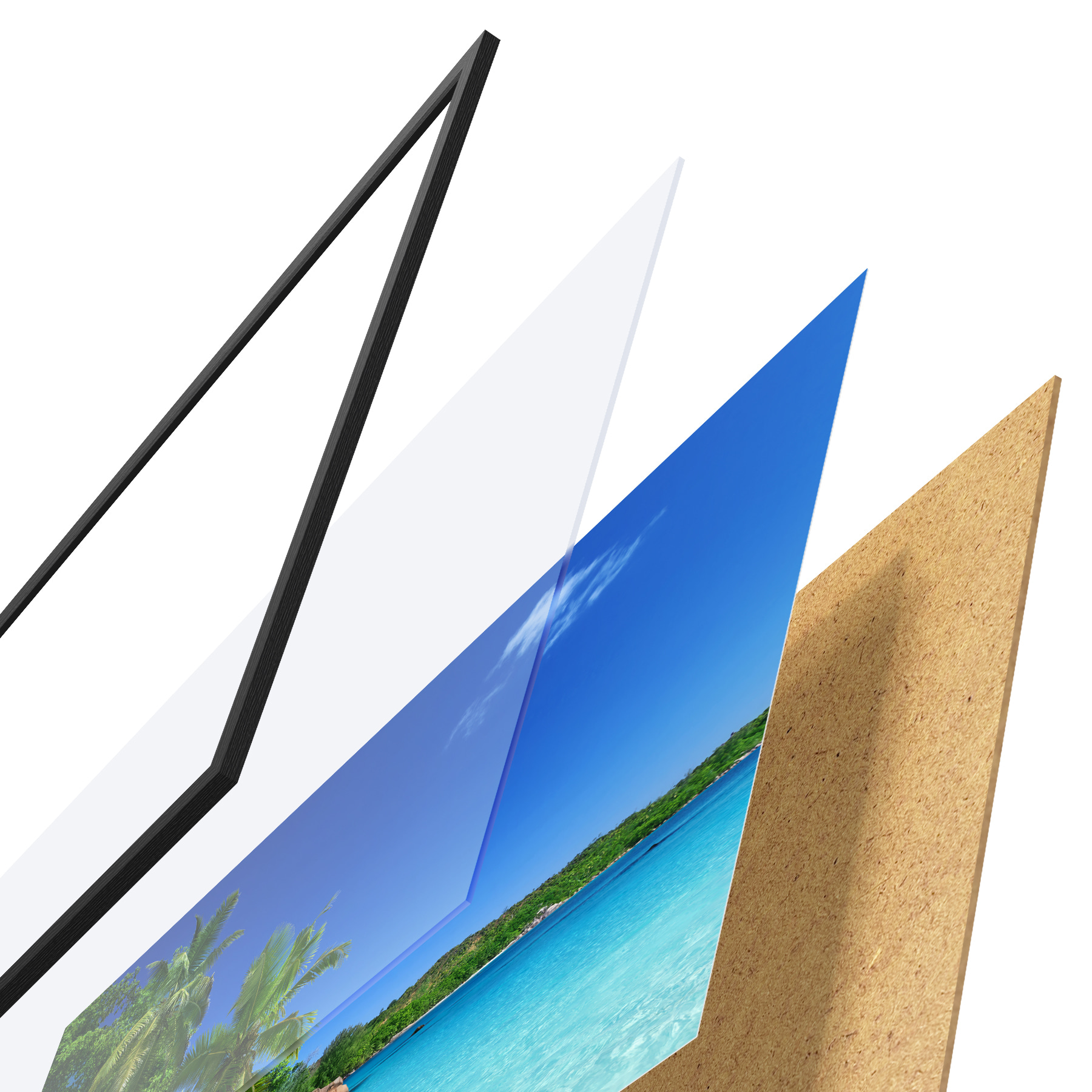 Plakāts sastāv no rāmja, pleksstikla, iespiestā attēla un skaidu plātnes pamatnes. Plakātu var uzreiz piekarināt pie sienas, pateicoties aizmugurē esošajiem stiprinājumiem.