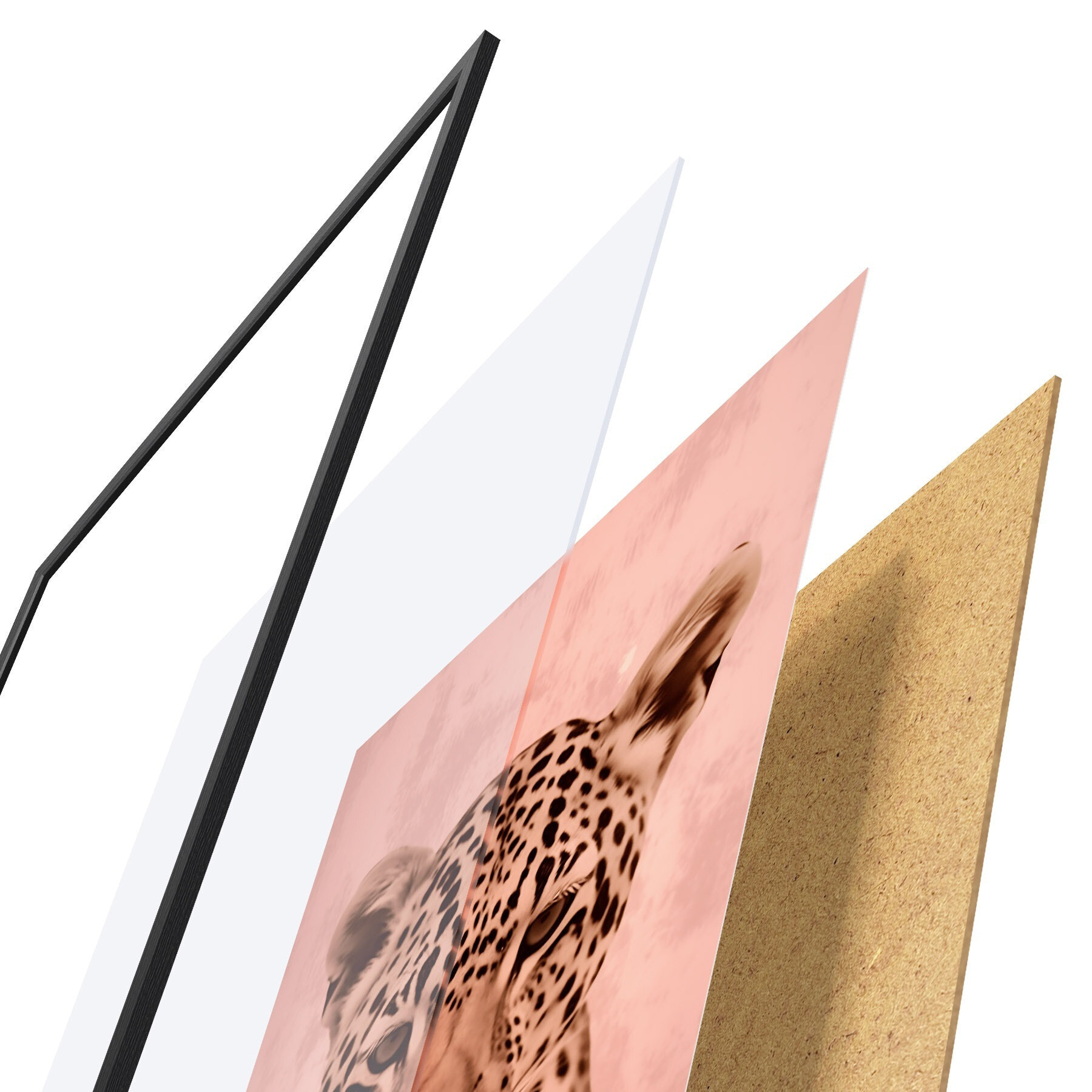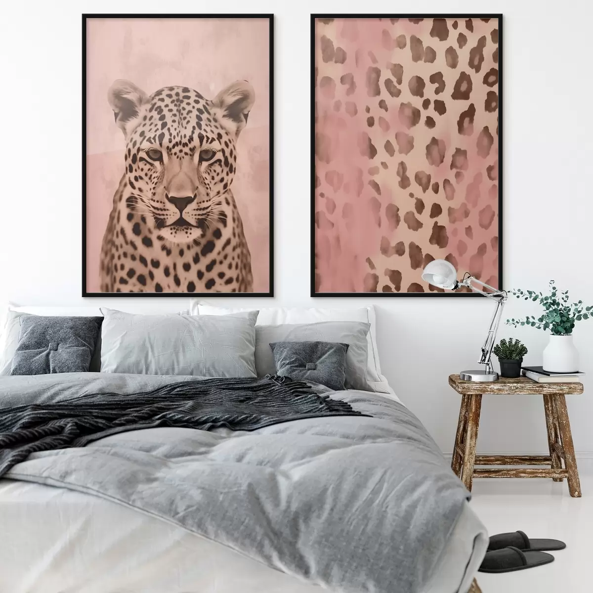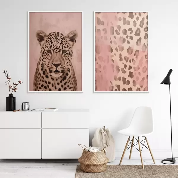 Plakāts Geparda portrets, abstraktais raksts ar leoparda apdruku uz rozā fona Nr d00402
