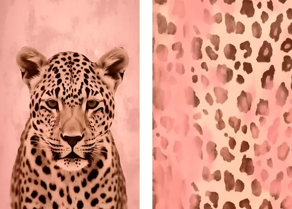 Plakāts Geparda portrets, abstraktais raksts ar leoparda apdruku uz rozā fona Nr d00402