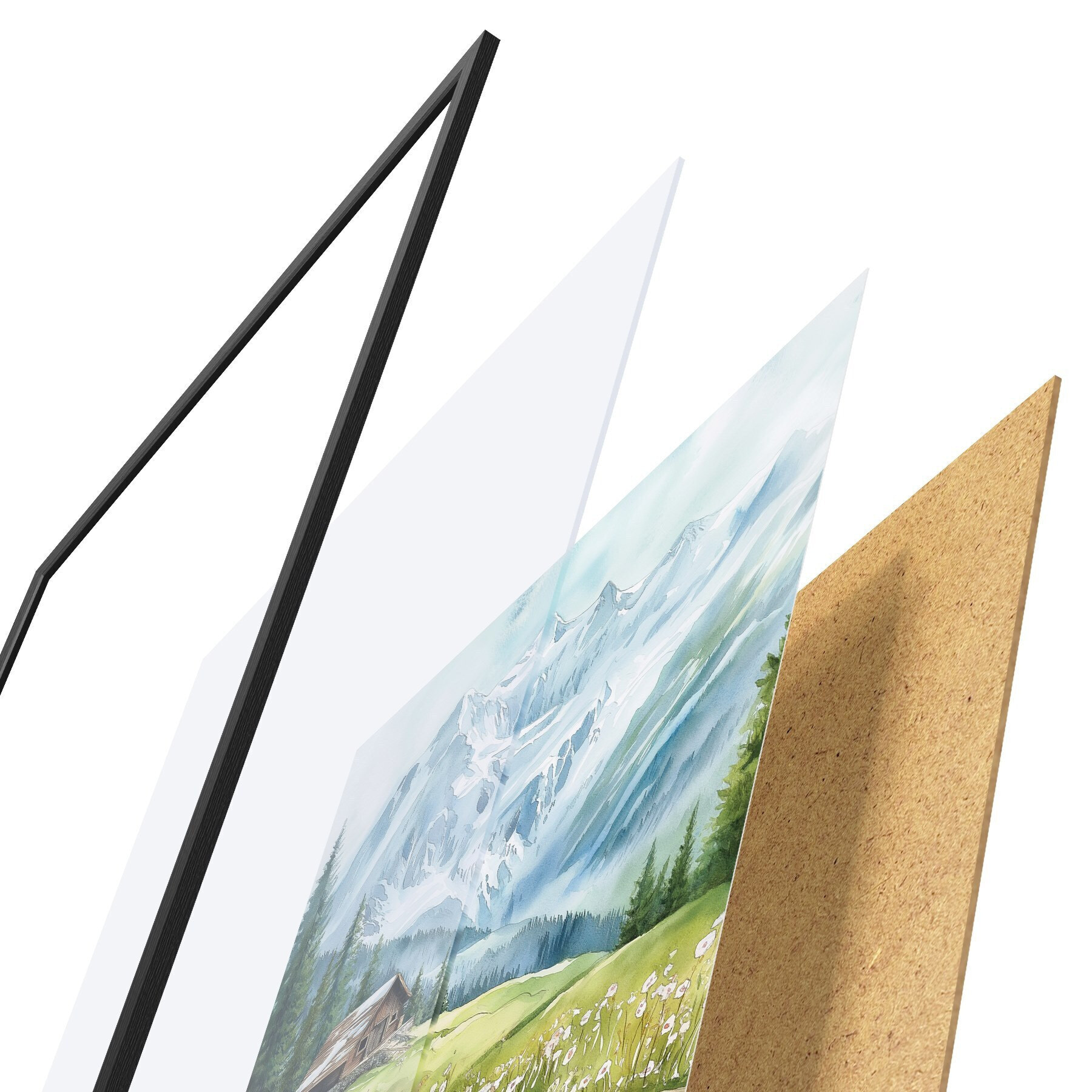Plakāts sastāv no rāmja, pleksstikla, iespiestā attēla un skaidu plātnes pamatnes. Plakātu var uzreiz piekarināt pie sienas, pateicoties aizmugurē esošajiem stiprinājumiem.