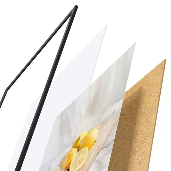 Plakāts sastāv no rāmja, pleksstikla, iespiestā attēla un skaidu plātnes pamatnes. Plakātu var uzreiz piekarināt pie sienas, pateicoties aizmugurē esošajiem stiprinājumiem.