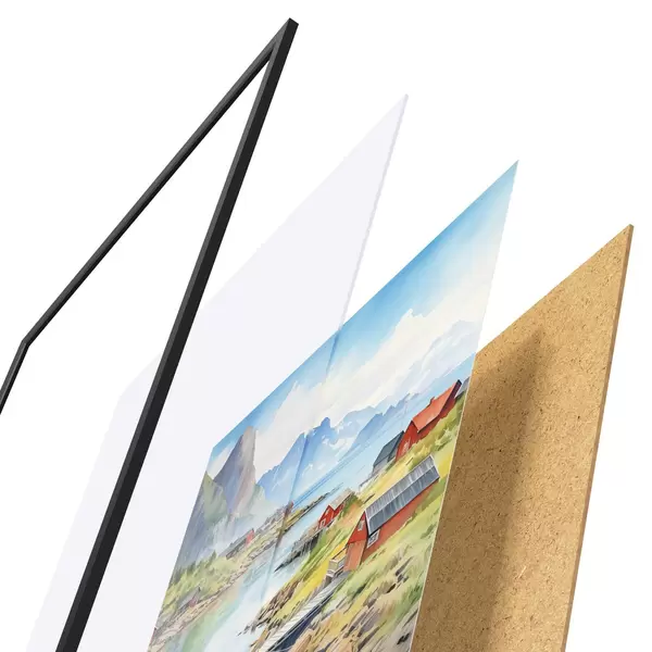Plakāts sastāv no rāmja, pleksstikla, iespiestā attēla un skaidu plātnes pamatnes. Plakātu var uzreiz piekarināt pie sienas, pateicoties aizmugurē esošajiem stiprinājumiem.