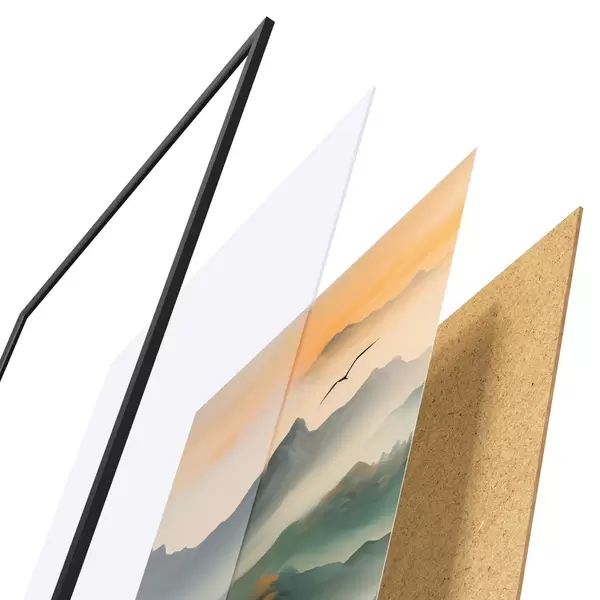 Plakāts sastāv no rāmja, pleksstikla, iespiestā attēla un skaidu plātnes pamatnes. Plakātu var uzreiz piekarināt pie sienas, pateicoties aizmugurē esošajiem stiprinājumiem.