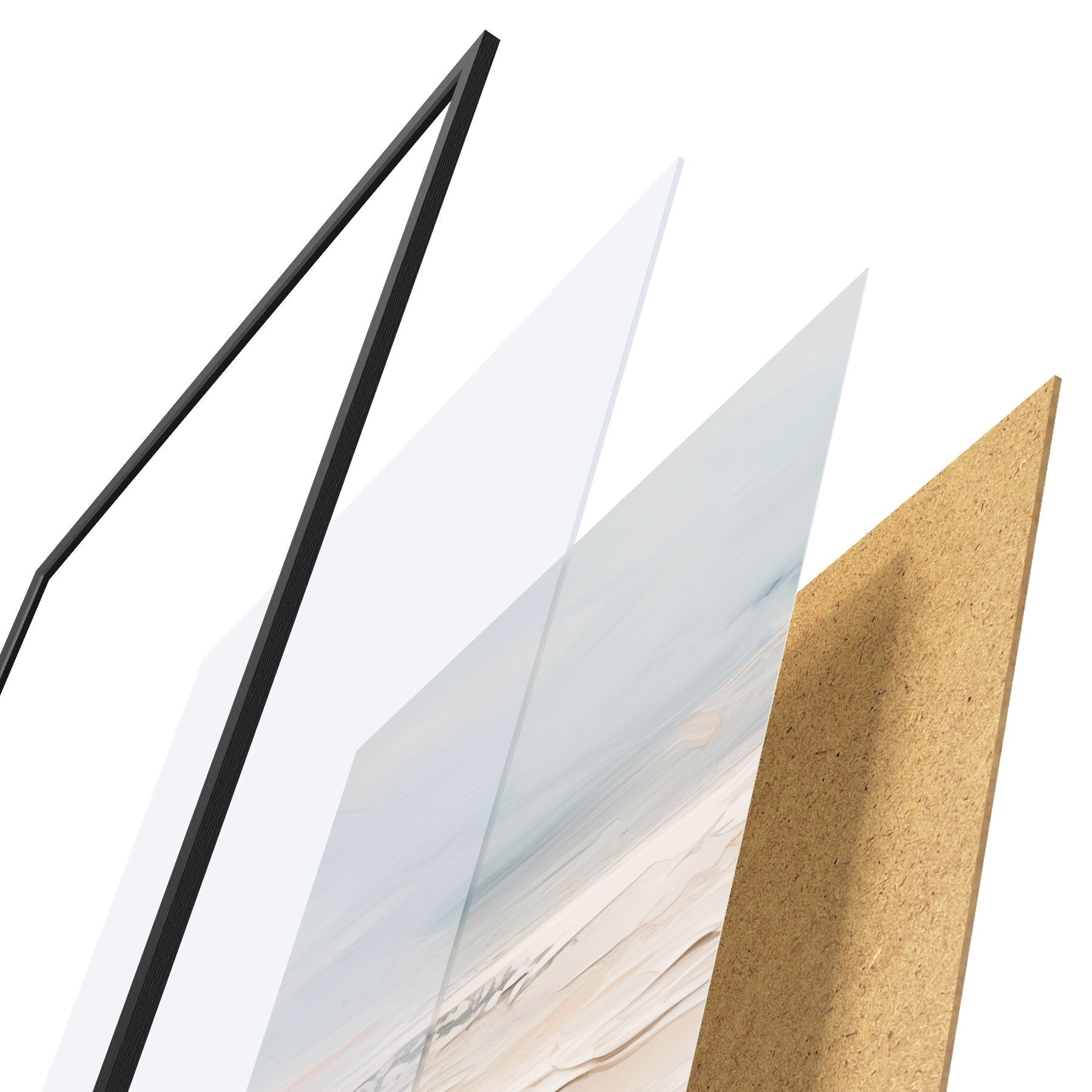 Plakāts sastāv no rāmja, pleksstikla, iespiestā attēla un skaidu plātnes pamatnes. Plakātu var uzreiz piekarināt pie sienas, pateicoties aizmugurē esošajiem stiprinājumiem.
