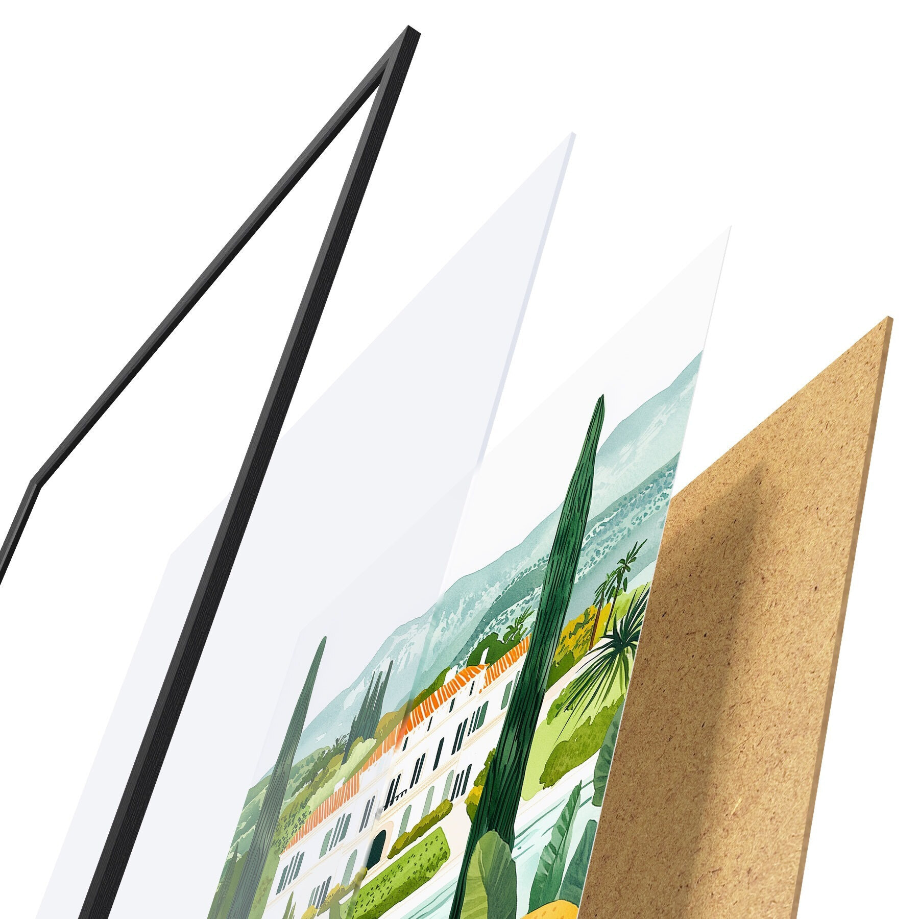 Plakāts sastāv no rāmja, pleksstikla, iespiestā attēla un skaidu plātnes pamatnes. Plakātu var uzreiz piekarināt pie sienas, pateicoties aizmugurē esošajiem stiprinājumiem.