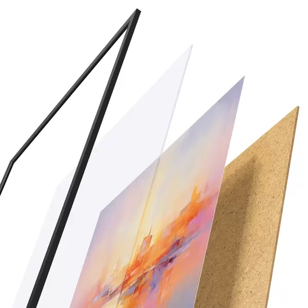 Plakāts sastāv no rāmja, pleksstikla, iespiestā attēla un skaidu plātnes pamatnes. Plakātu var uzreiz piekarināt pie sienas, pateicoties aizmugurē esošajiem stiprinājumiem.
