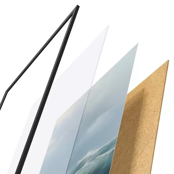 Plakāts sastāv no rāmja, pleksstikla, iespiestā attēla un skaidu plātnes pamatnes. Plakātu var uzreiz piekarināt pie sienas, pateicoties aizmugurē esošajiem stiprinājumiem.