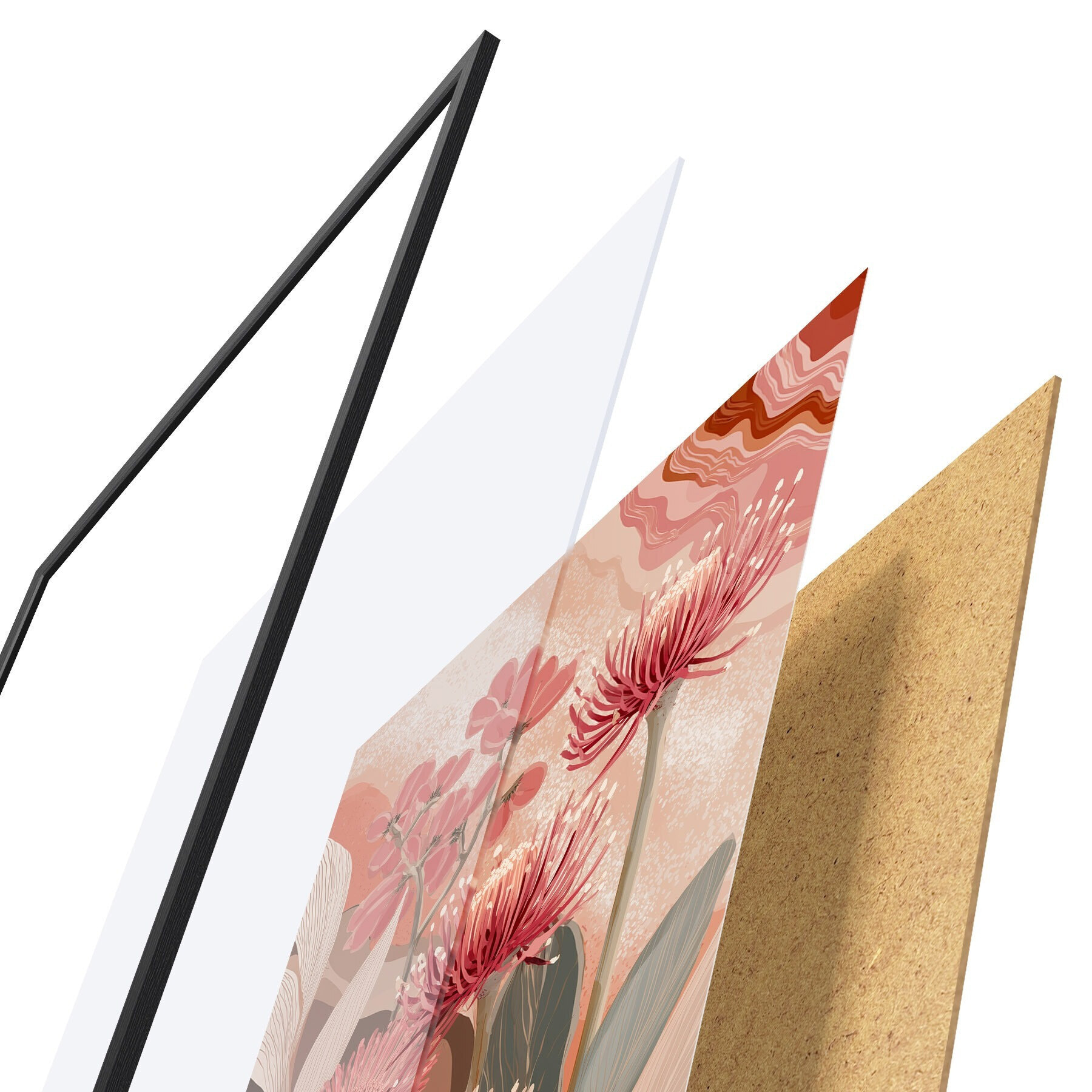 Plakāts sastāv no rāmja, pleksstikla, iespiestā attēla un skaidu plātnes pamatnes. Plakātu var uzreiz piekarināt pie sienas, pateicoties aizmugurē esošajiem stiprinājumiem.