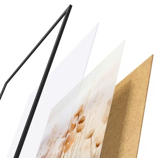 Plakāts sastāv no rāmja, pleksstikla, iespiestā attēla un skaidu plātnes pamatnes. Plakātu var uzreiz piekarināt pie sienas, pateicoties aizmugurē esošajiem stiprinājumiem.