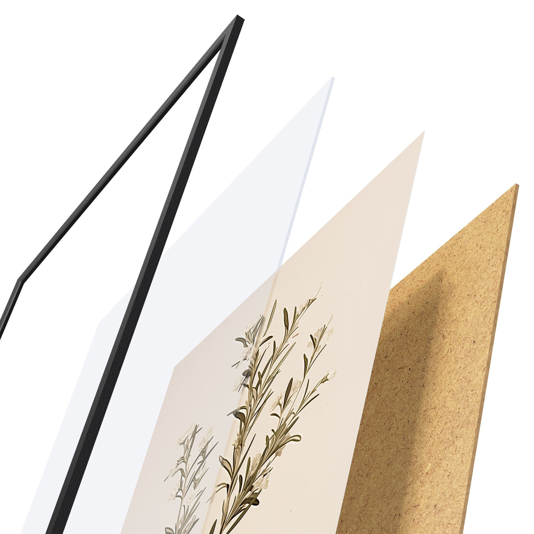 Plakāts sastāv no rāmja, pleksstikla, iespiestā attēla un skaidu plātnes pamatnes. Plakātu var uzreiz piekarināt pie sienas, pateicoties aizmugurē esošajiem stiprinājumiem.
