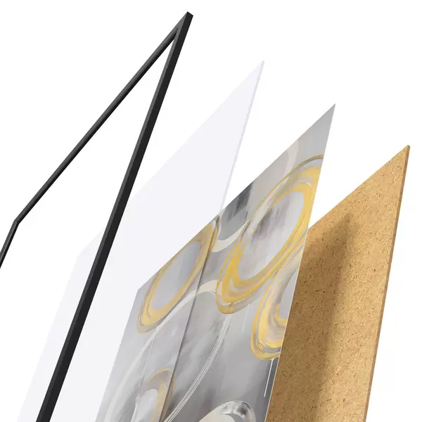 Plakāts sastāv no rāmja, pleksstikla, iespiestā attēla un skaidu plātnes pamatnes. Plakātu var uzreiz piekarināt pie sienas, pateicoties aizmugurē esošajiem stiprinājumiem.