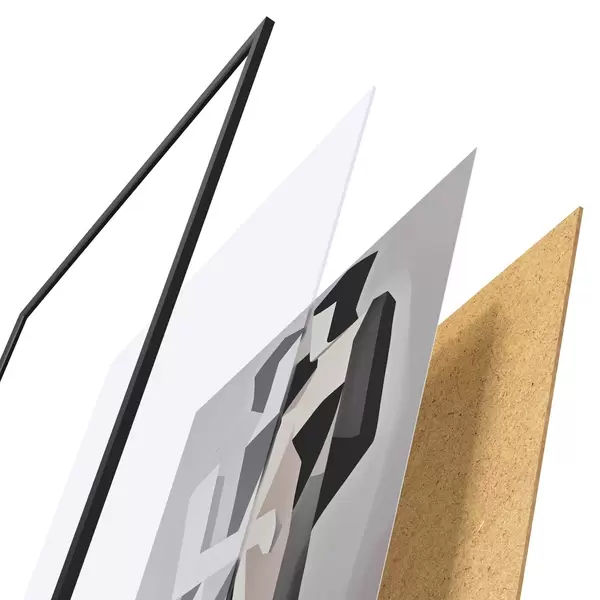 Plakāts sastāv no rāmja, pleksstikla, iespiestā attēla un skaidu plātnes pamatnes. Plakātu var uzreiz piekarināt pie sienas, pateicoties aizmugurē esošajiem stiprinājumiem.