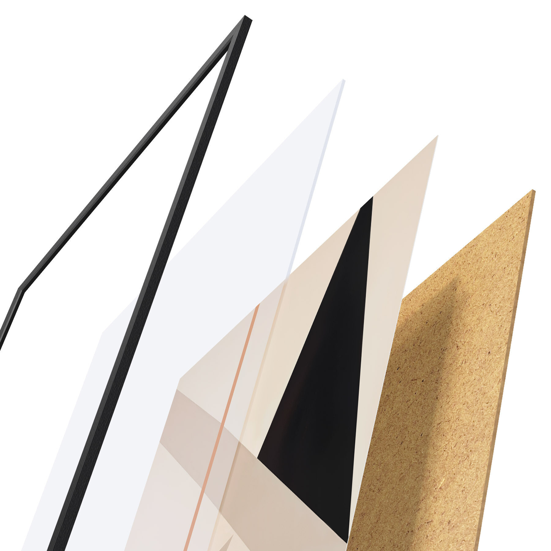 Plakāts sastāv no rāmja, pleksstikla, iespiestā attēla un skaidu plātnes pamatnes. Plakātu var uzreiz piekarināt pie sienas, pateicoties aizmugurē esošajiem stiprinājumiem.