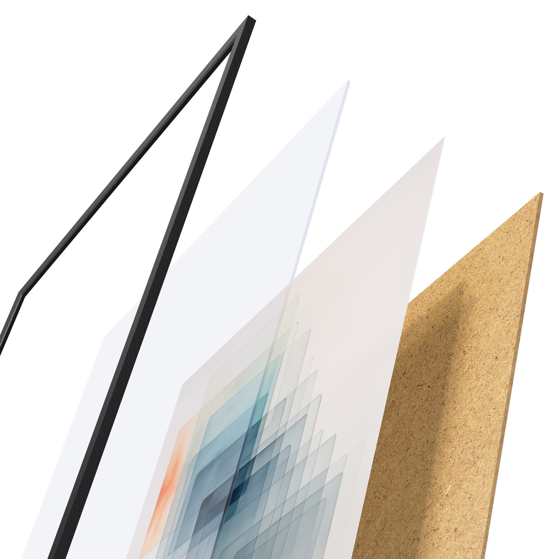 Plakāts sastāv no rāmja, pleksstikla, iespiestā attēla un skaidu plātnes pamatnes. Plakātu var uzreiz piekarināt pie sienas, pateicoties aizmugurē esošajiem stiprinājumiem.