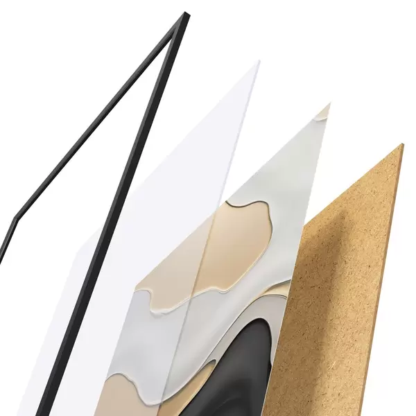 Plakāts sastāv no rāmja, pleksstikla, iespiestā attēla un skaidu plātnes pamatnes. Plakātu var uzreiz piekarināt pie sienas, pateicoties aizmugurē esošajiem stiprinājumiem.