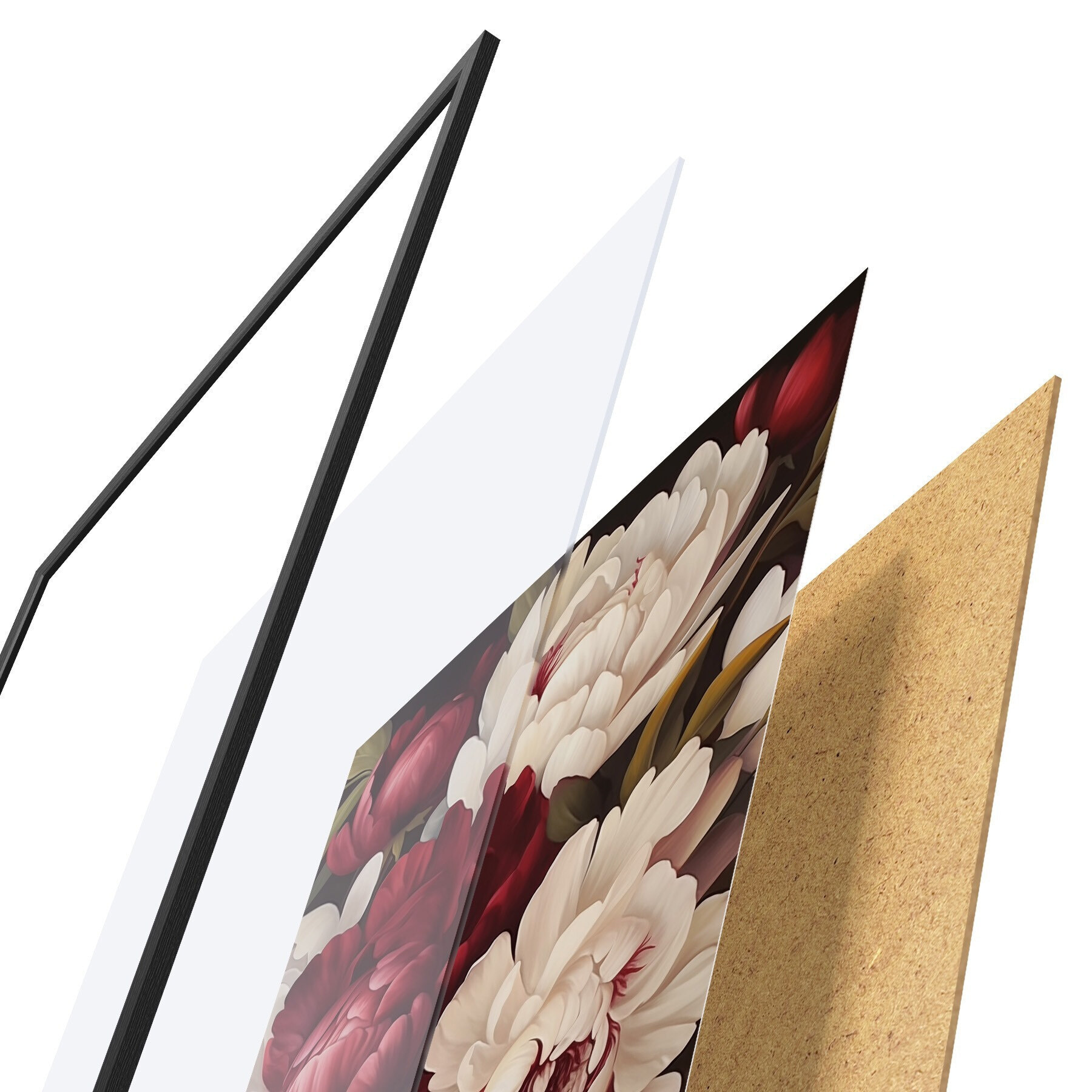 Plakāts sastāv no rāmja, pleksstikla, iespiestā attēla un skaidu plātnes pamatnes. Plakātu var uzreiz piekarināt pie sienas, pateicoties aizmugurē esošajiem stiprinājumiem.