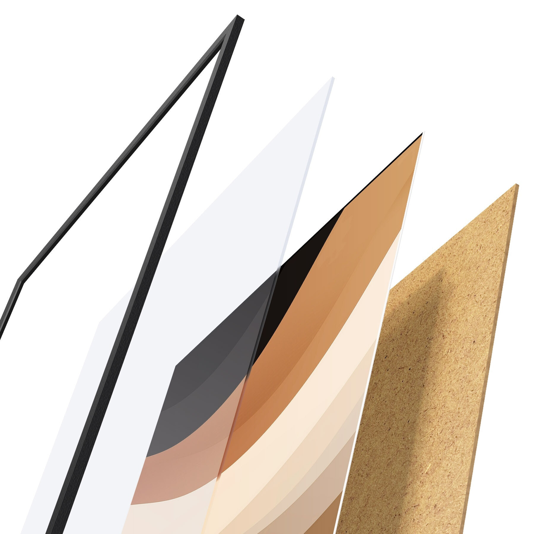 Plakāts sastāv no rāmja, pleksstikla, iespiestā attēla un skaidu plātnes pamatnes. Plakātu var uzreiz piekarināt pie sienas, pateicoties aizmugurē esošajiem stiprinājumiem.
