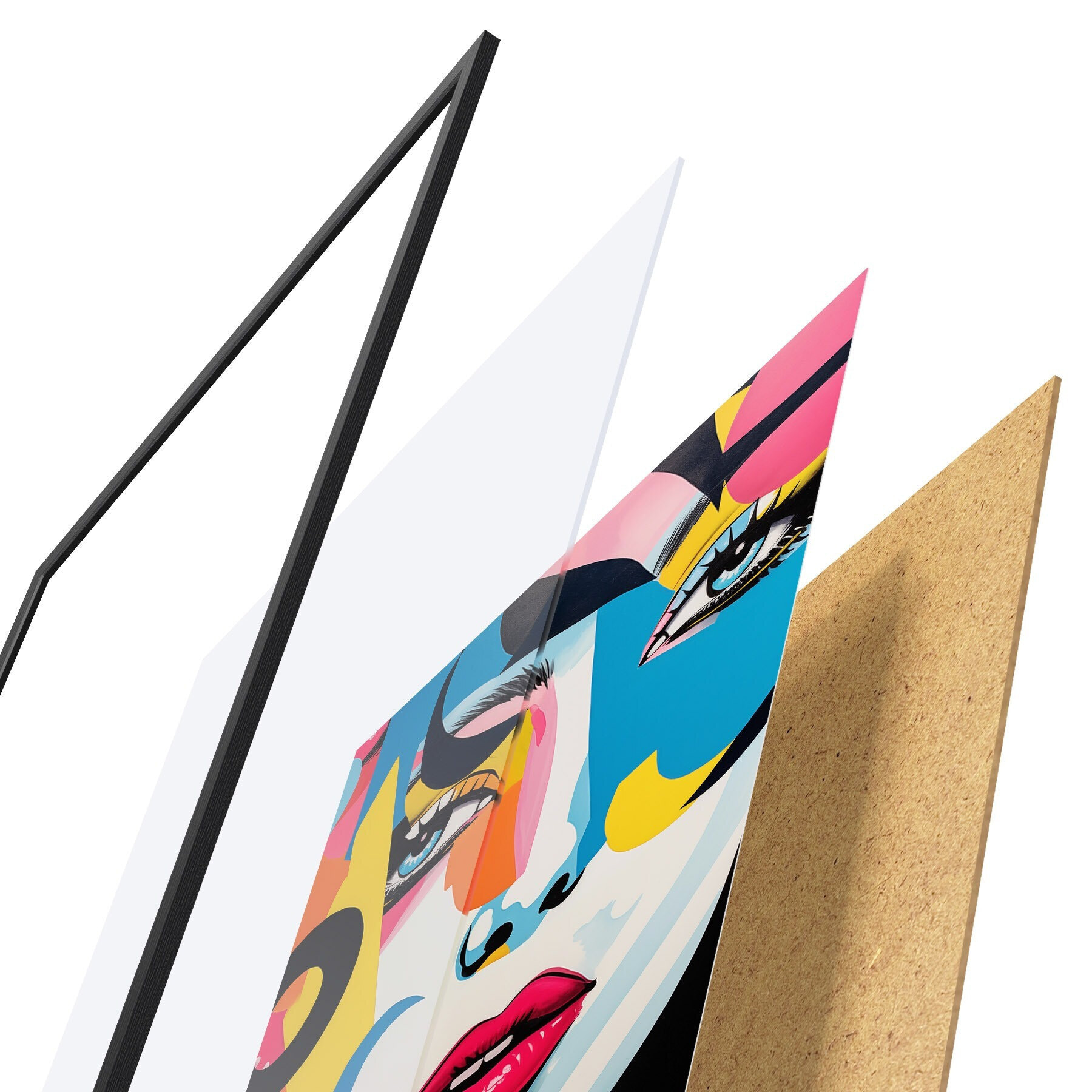 Plakāts sastāv no rāmja, pleksstikla, iespiestā attēla un skaidu plātnes pamatnes. Plakātu var uzreiz piekarināt pie sienas, pateicoties aizmugurē esošajiem stiprinājumiem.