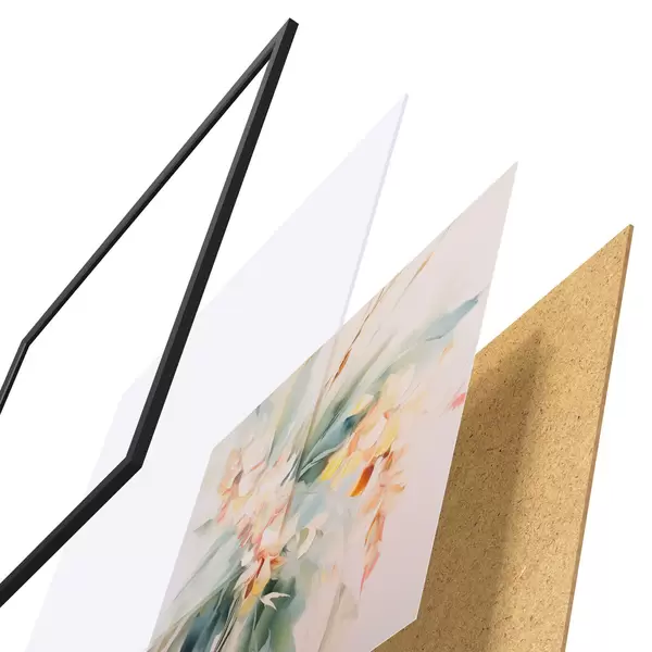 Plakāts sastāv no rāmja, pleksstikla, iespiestā attēla un skaidu plātnes pamatnes. Plakātu var uzreiz piekarināt pie sienas, pateicoties aizmugurē esošajiem stiprinājumiem.