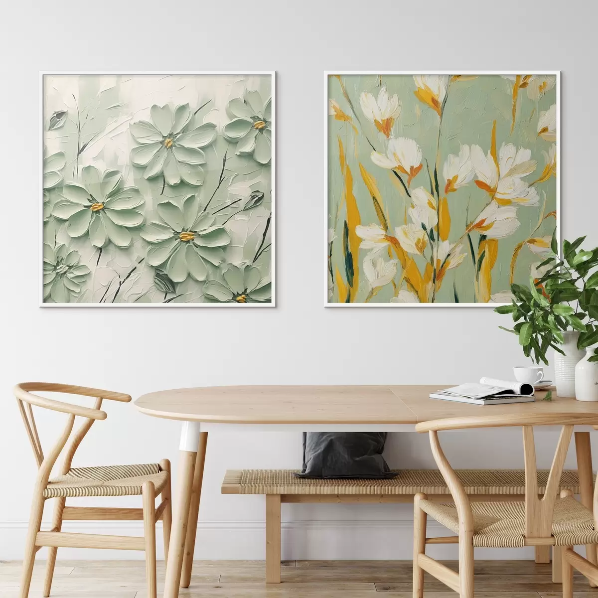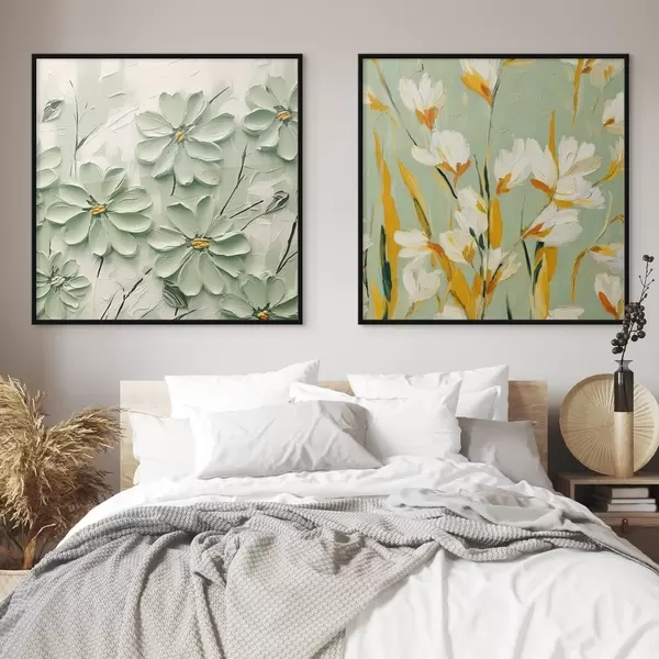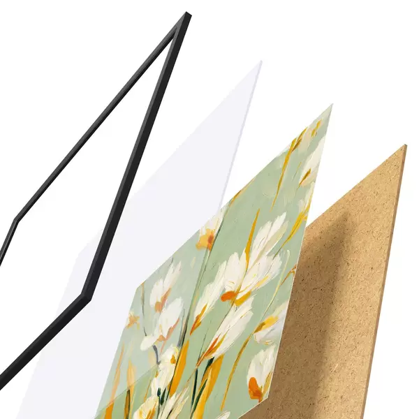 Plakāts Ziedu pļava: mākslas kompozīcija ar apjomīgiem ziediem uz pasteļfona Nr d00567