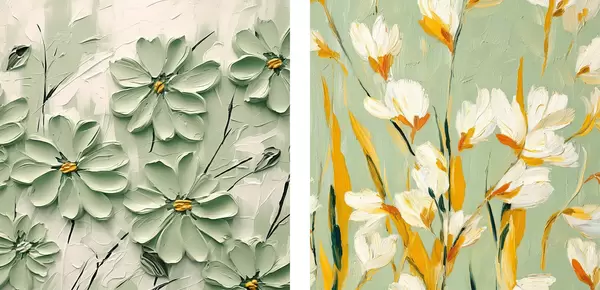 Plakāts Ziedu pļava: mākslas kompozīcija ar apjomīgiem ziediem uz pasteļfona Nr d00567