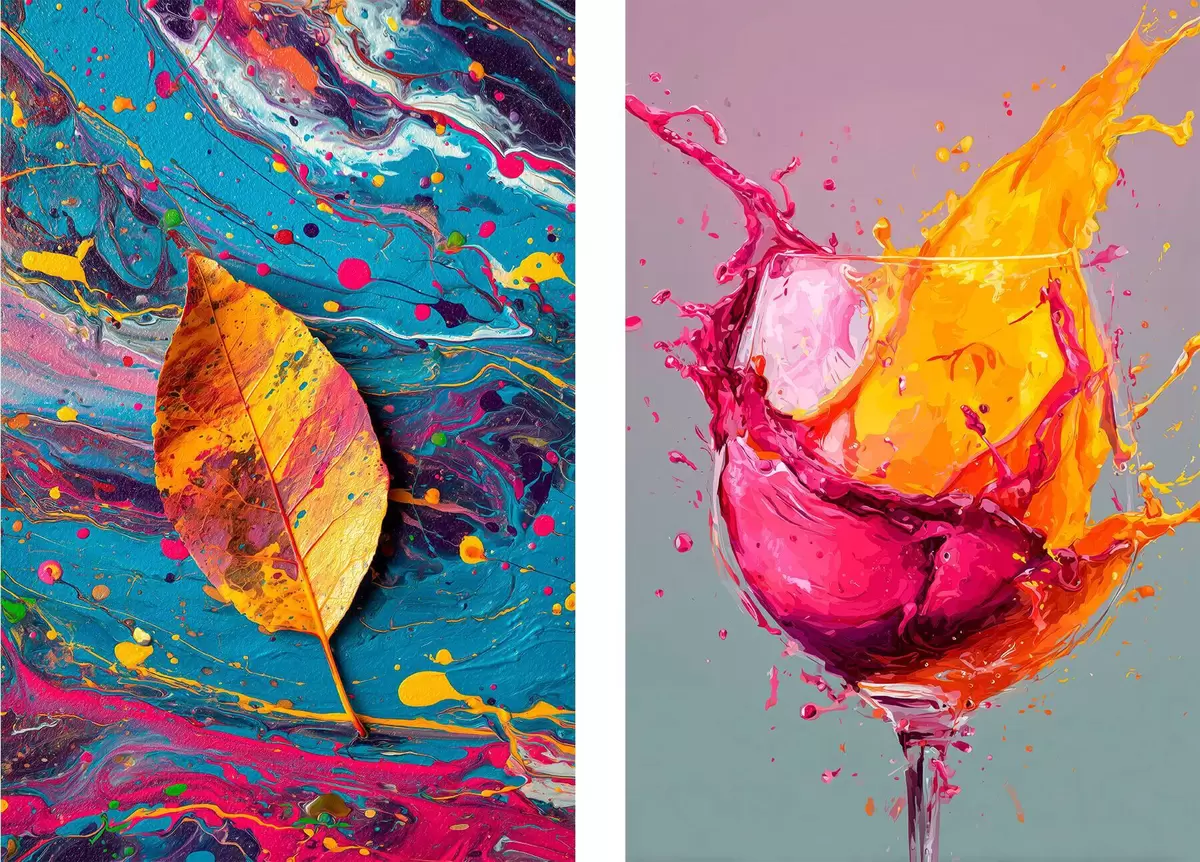 Plakāts Izteiksmīga abstrakcija ar dabas un dzērienu elementiem Nr d00570