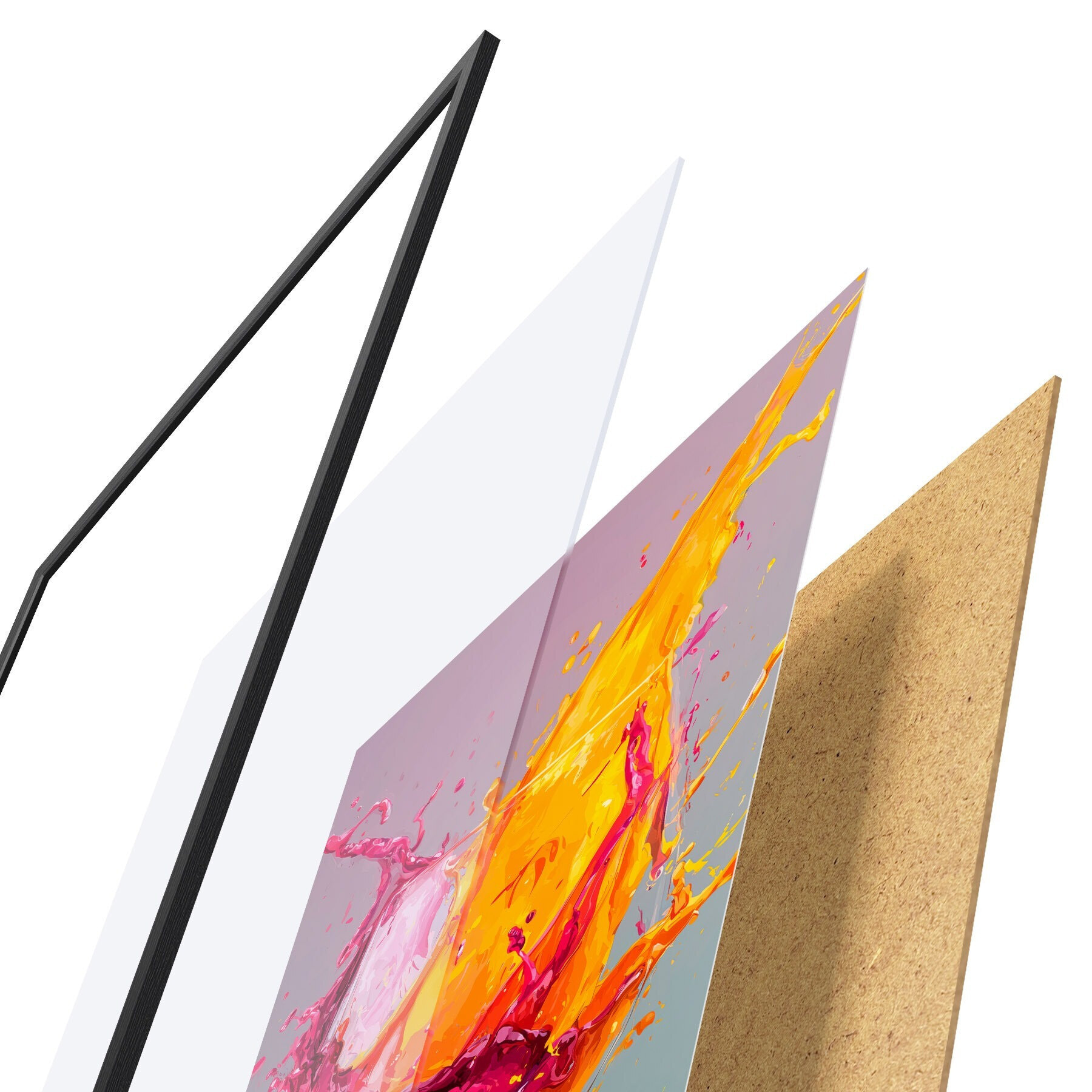 Plakāts sastāv no rāmja, pleksstikla, iespiestā attēla un skaidu plātnes pamatnes. Plakātu var uzreiz piekarināt pie sienas, pateicoties aizmugurē esošajiem stiprinājumiem.