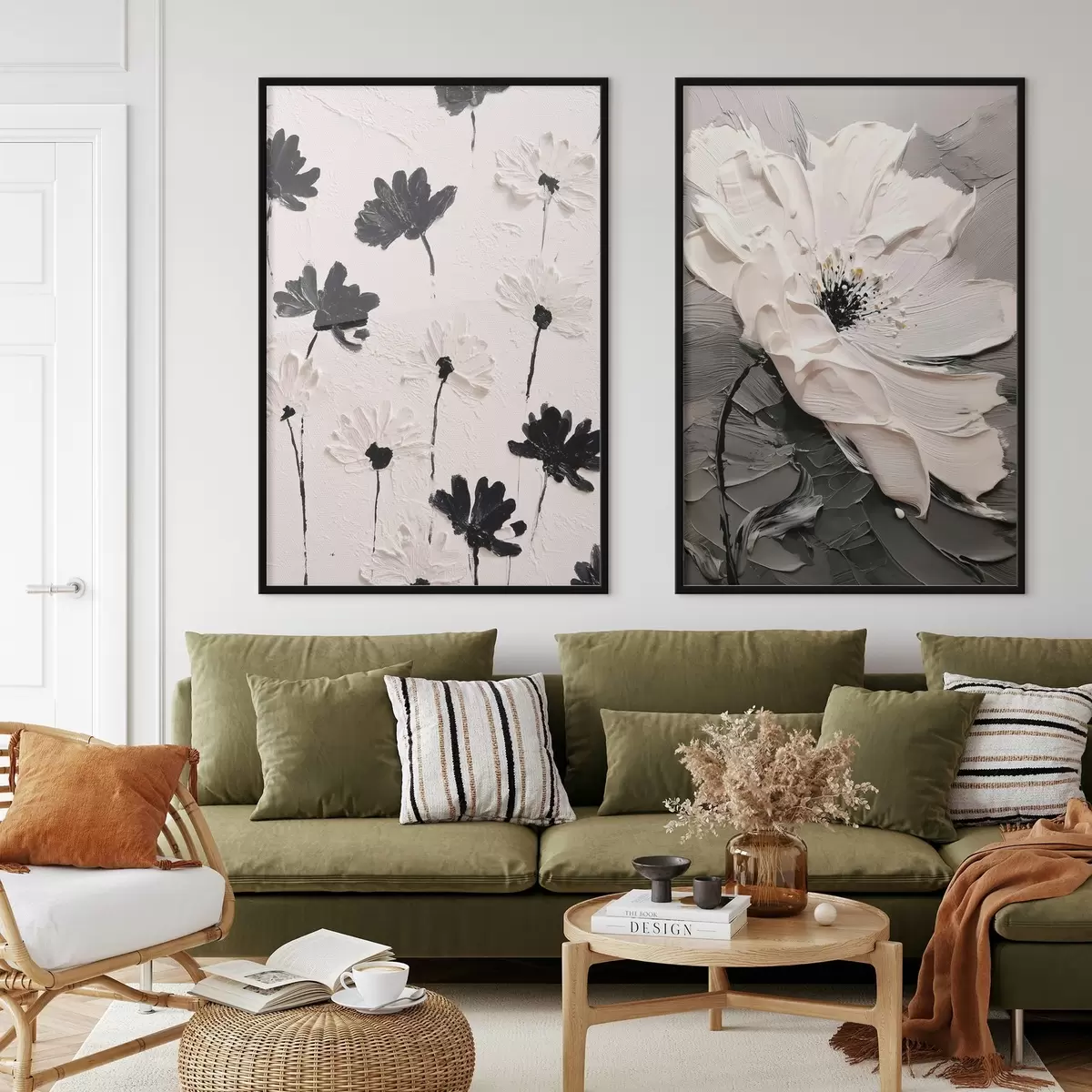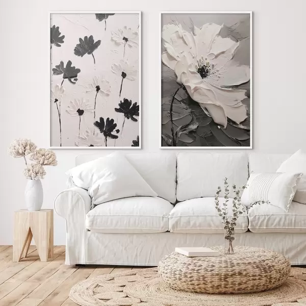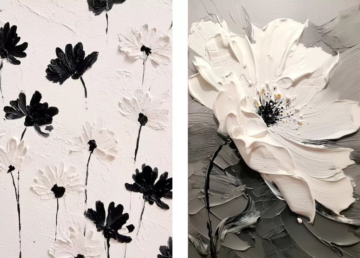 Plakāts Diptihs ar baltiem un melniem ziediem modernā stilā Nr d00571