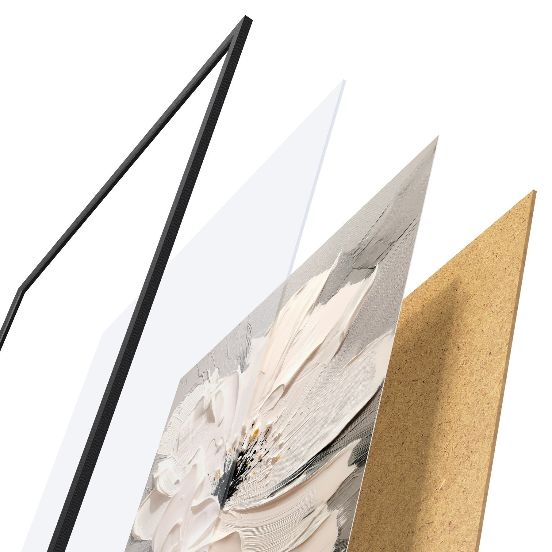 Plakāts sastāv no rāmja, pleksstikla, iespiestā attēla un skaidu plātnes pamatnes. Plakātu var uzreiz piekarināt pie sienas, pateicoties aizmugurē esošajiem stiprinājumiem.