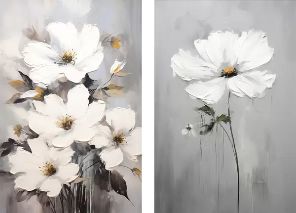 Plakāts Mākslinieciska kompozīcija ar baltiem ziediem un fakturētu virsmu minimālisma stilā d00574