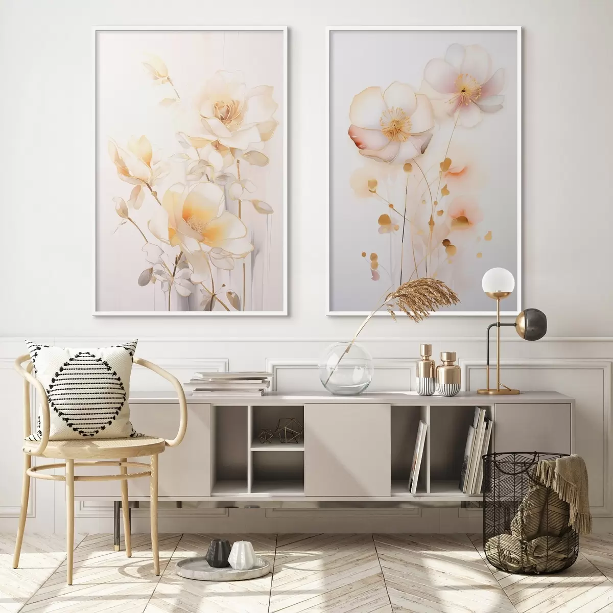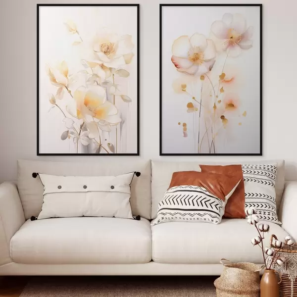 Plakāts Ziedu duets: maigs diptihs akvareļu stilā ar elegantām līnijām Nr d00577