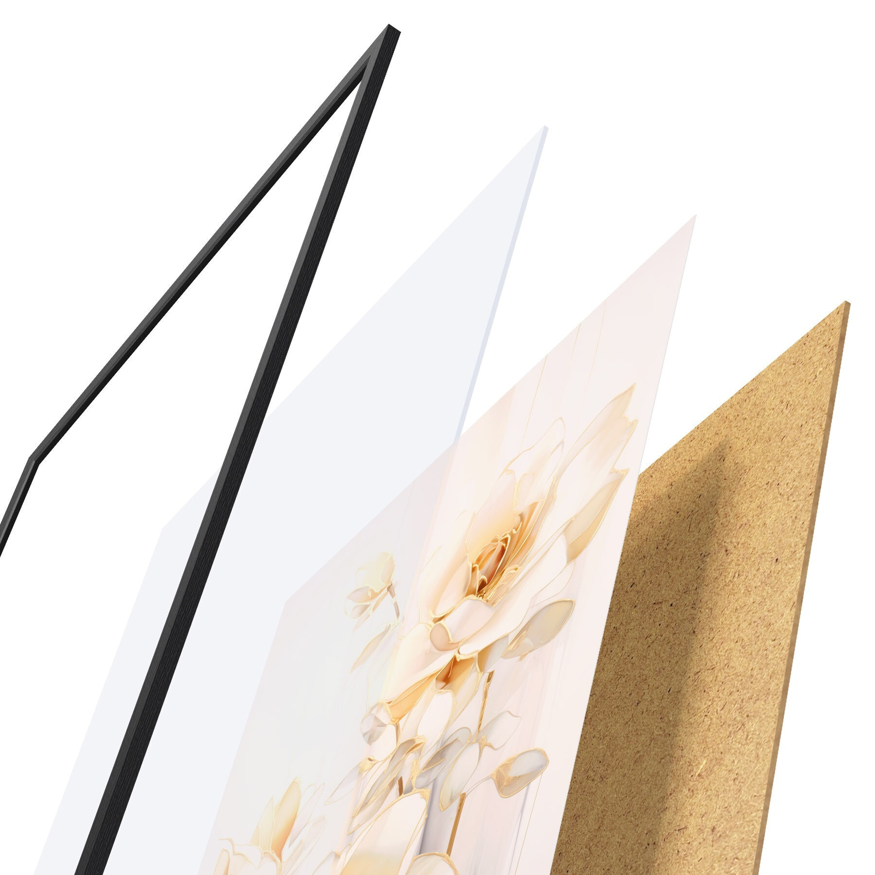 Plakāts sastāv no rāmja, pleksstikla, iespiestā attēla un skaidu plātnes pamatnes. Plakātu var uzreiz piekarināt pie sienas, pateicoties aizmugurē esošajiem stiprinājumiem.