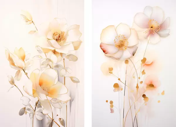 Plakāts Ziedu duets: maigs diptihs akvareļu stilā ar elegantām līnijām Nr d00577