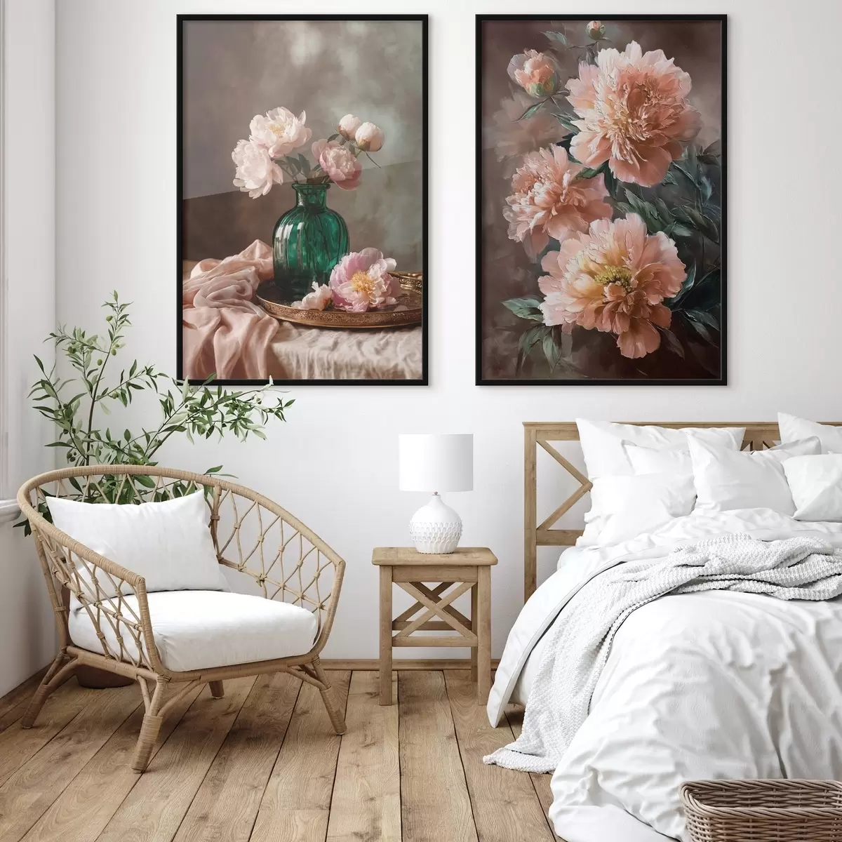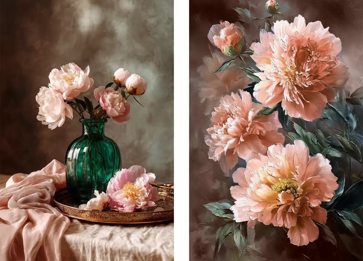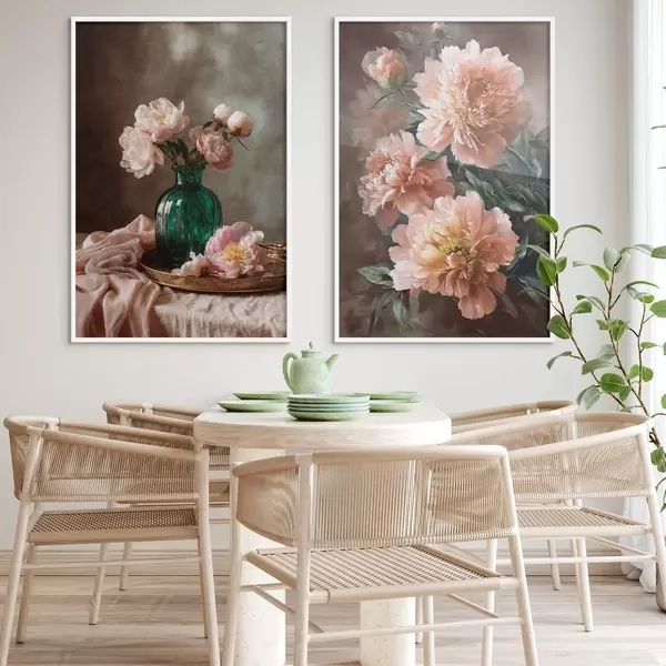 Plakāts Pārī kompozīcija ar rozā peonijām vāzē un uz audekla Nr d00578