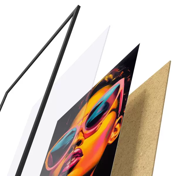 Plakāts sastāv no rāmja, pleksstikla, iespiestā attēla un skaidu plātnes pamatnes. Plakātu var uzreiz piekarināt pie sienas, pateicoties aizmugurē esošajiem stiprinājumiem.