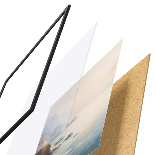 Plakāts sastāv no rāmja, pleksstikla, iespiestā attēla un skaidu plātnes pamatnes. Plakātu var uzreiz piekarināt pie sienas, pateicoties aizmugurē esošajiem stiprinājumiem.
