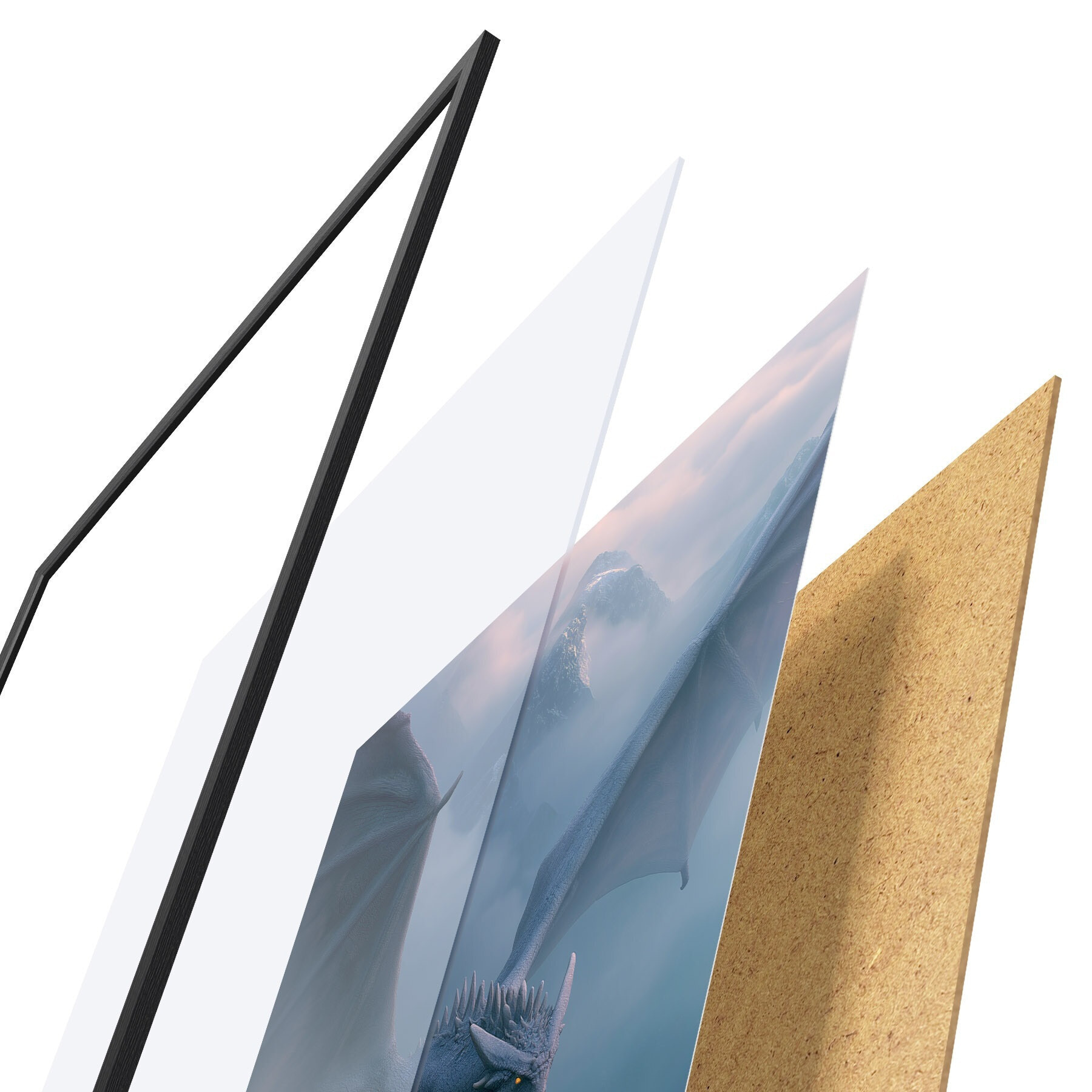 Plakāts sastāv no rāmja, pleksstikla, iespiestā attēla un skaidu plātnes pamatnes. Plakātu var uzreiz piekarināt pie sienas, pateicoties aizmugurē esošajiem stiprinājumiem.