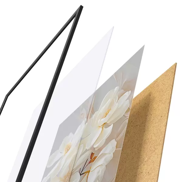 Plakāts sastāv no rāmja, pleksstikla, iespiestā attēla un skaidu plātnes pamatnes. Plakātu var uzreiz piekarināt pie sienas, pateicoties aizmugurē esošajiem stiprinājumiem.
