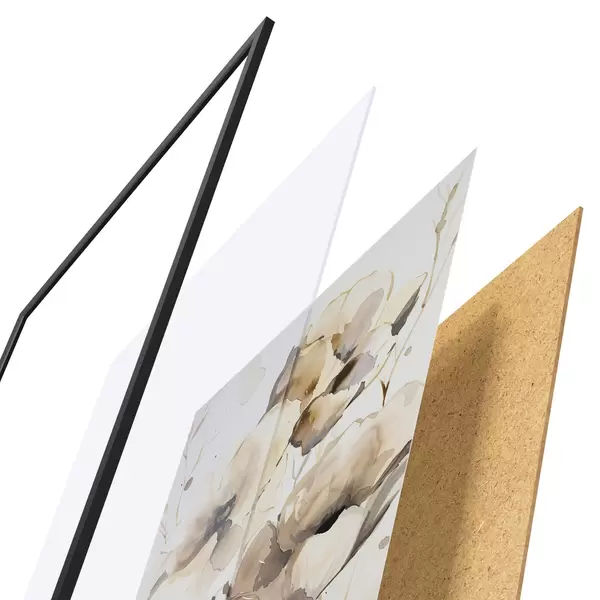 Plakāts sastāv no rāmja, pleksstikla, iespiestā attēla un skaidu plātnes pamatnes. Plakātu var uzreiz piekarināt pie sienas, pateicoties aizmugurē esošajiem stiprinājumiem.
