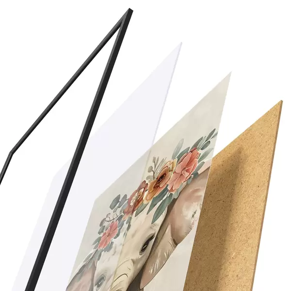 Plakāts sastāv no rāmja, pleksstikla, iespiestā attēla un skaidu plātnes pamatnes. Plakātu var uzreiz piekarināt pie sienas, pateicoties aizmugurē esošajiem stiprinājumiem.