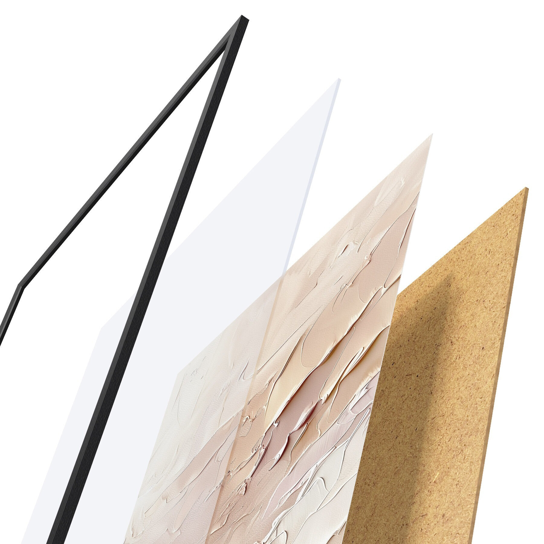 Plakāts sastāv no rāmja, pleksstikla, iespiestā attēla un skaidu plātnes pamatnes. Plakātu var uzreiz piekarināt pie sienas, pateicoties aizmugurē esošajiem stiprinājumiem.