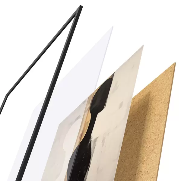 Plakāts sastāv no rāmja, pleksstikla, iespiestā attēla un skaidu plātnes pamatnes. Plakātu var uzreiz piekarināt pie sienas, pateicoties aizmugurē esošajiem stiprinājumiem.