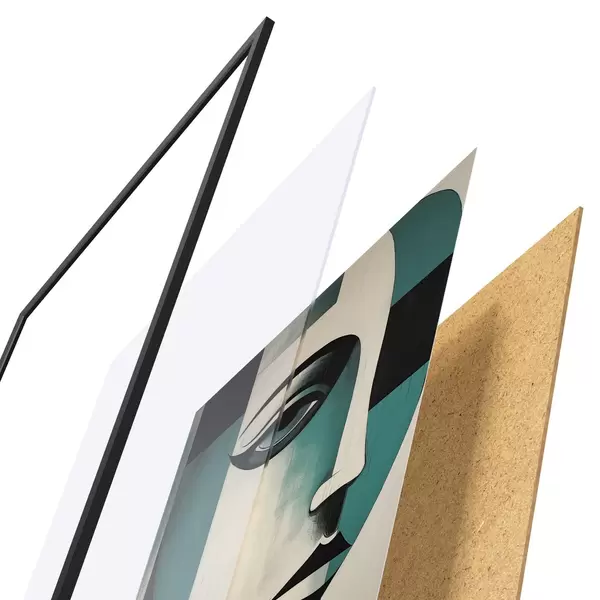 Plakāts sastāv no rāmja, pleksstikla, iespiestā attēla un skaidu plātnes pamatnes. Plakātu var uzreiz piekarināt pie sienas, pateicoties aizmugurē esošajiem stiprinājumiem.
