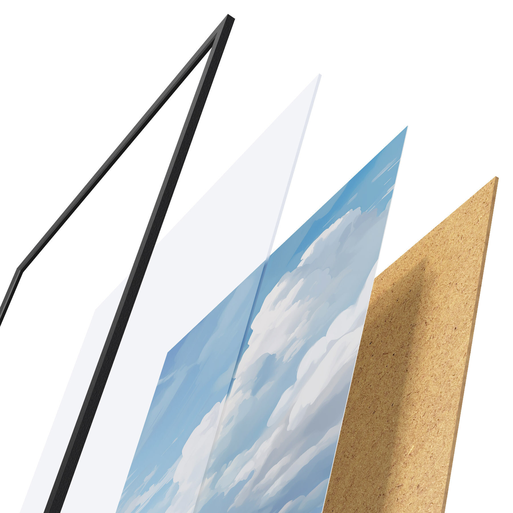Plakāts sastāv no rāmja, pleksstikla, iespiestā attēla un skaidu plātnes pamatnes. Plakātu var uzreiz piekarināt pie sienas, pateicoties aizmugurē esošajiem stiprinājumiem.