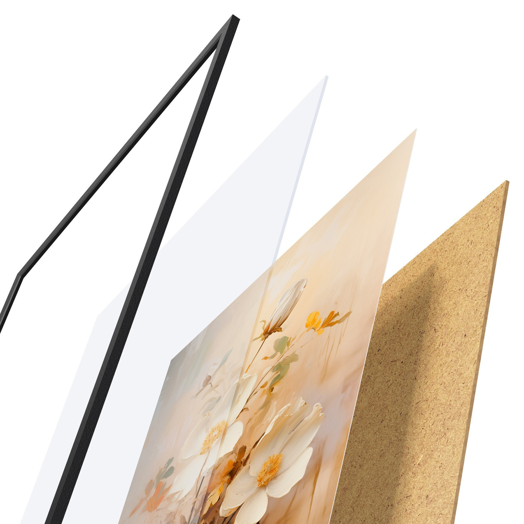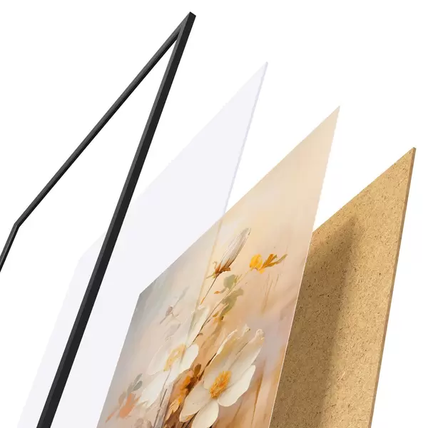 Plakāts sastāv no rāmja, pleksstikla, iespiestā attēla un skaidu plātnes pamatnes. Plakātu var uzreiz piekarināt pie sienas, pateicoties aizmugurē esošajiem stiprinājumiem.